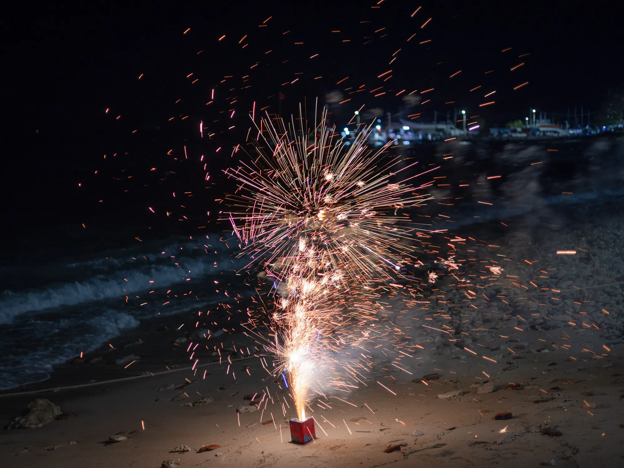 At the beginning of 2023, my girlfriend and I took a trip to Sanya and spent a night on Xidao Island. That evening, there were people selling fireworks on the beach, others setting them off, and still others simply enjoying themselves. We bought some fountains and lit them ourselves, taking a few photos. Though the pictures didn’t look impressive then, they have become precious memories now.