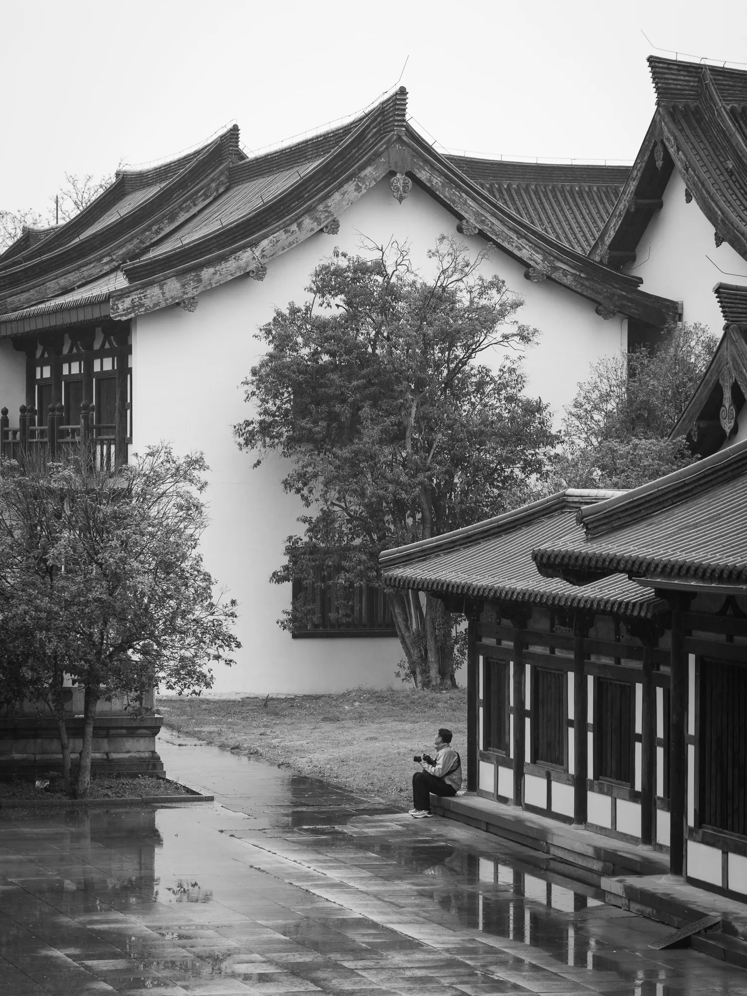 It began to drizzle around noon on the day my girlfriend and I visited the temple. This photo was taken after the rain had stopped, while we were still resting beneath the Qiling Pagoda. Coincidentally, it drizzled again when we visited Tōshōdai-ji two and a half years later.