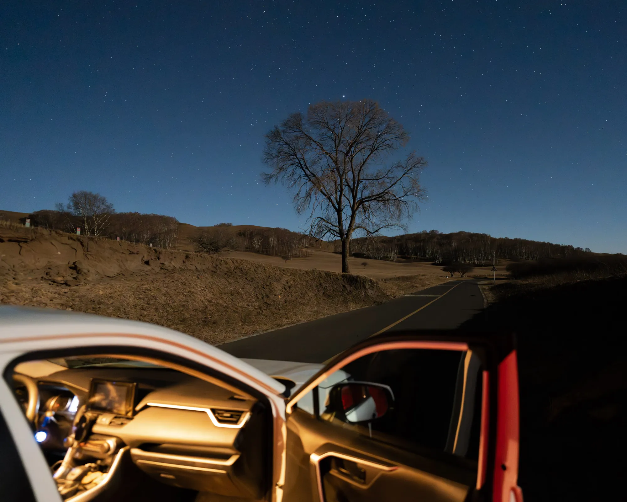 This photo was taken on the second night of our Inner Mongolia trip. We had bought some food beforehand and driven up to Volcano No. 6 in Wulanhada to shoot the starry sky with long exposures. I didn’t bring a tripod that night—just used a few rocks to steady the camera.