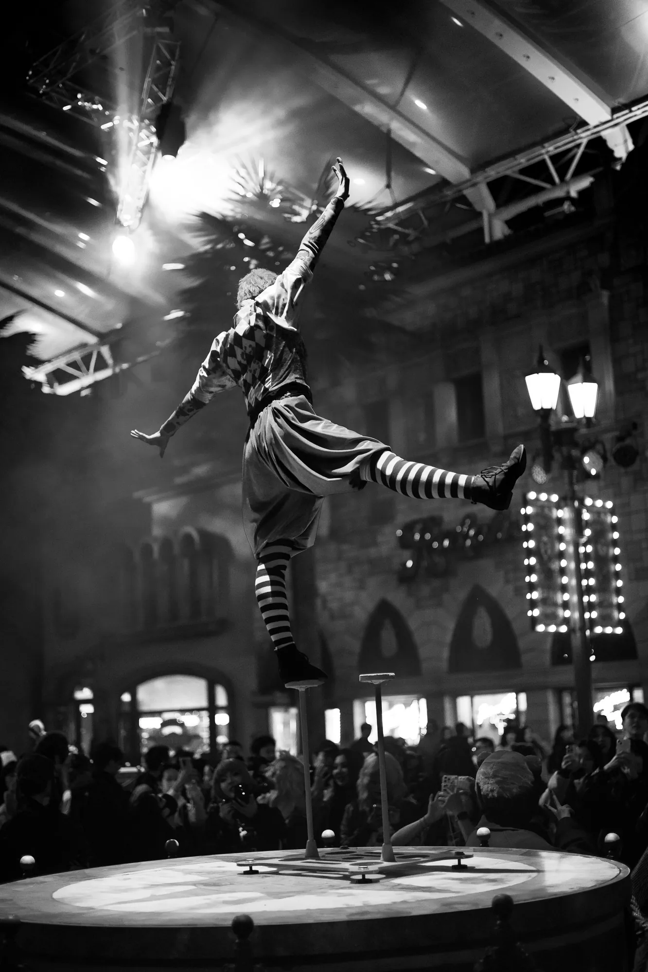 During Halloween, Universal Studios Beijing hosts special events. My wife and I got free tickets, so we came to check it out. There were many acrobats performing on-site. This photo was taken casually, but I spent a lot of effort in post-processing to enhance the lighting and atmosphere.