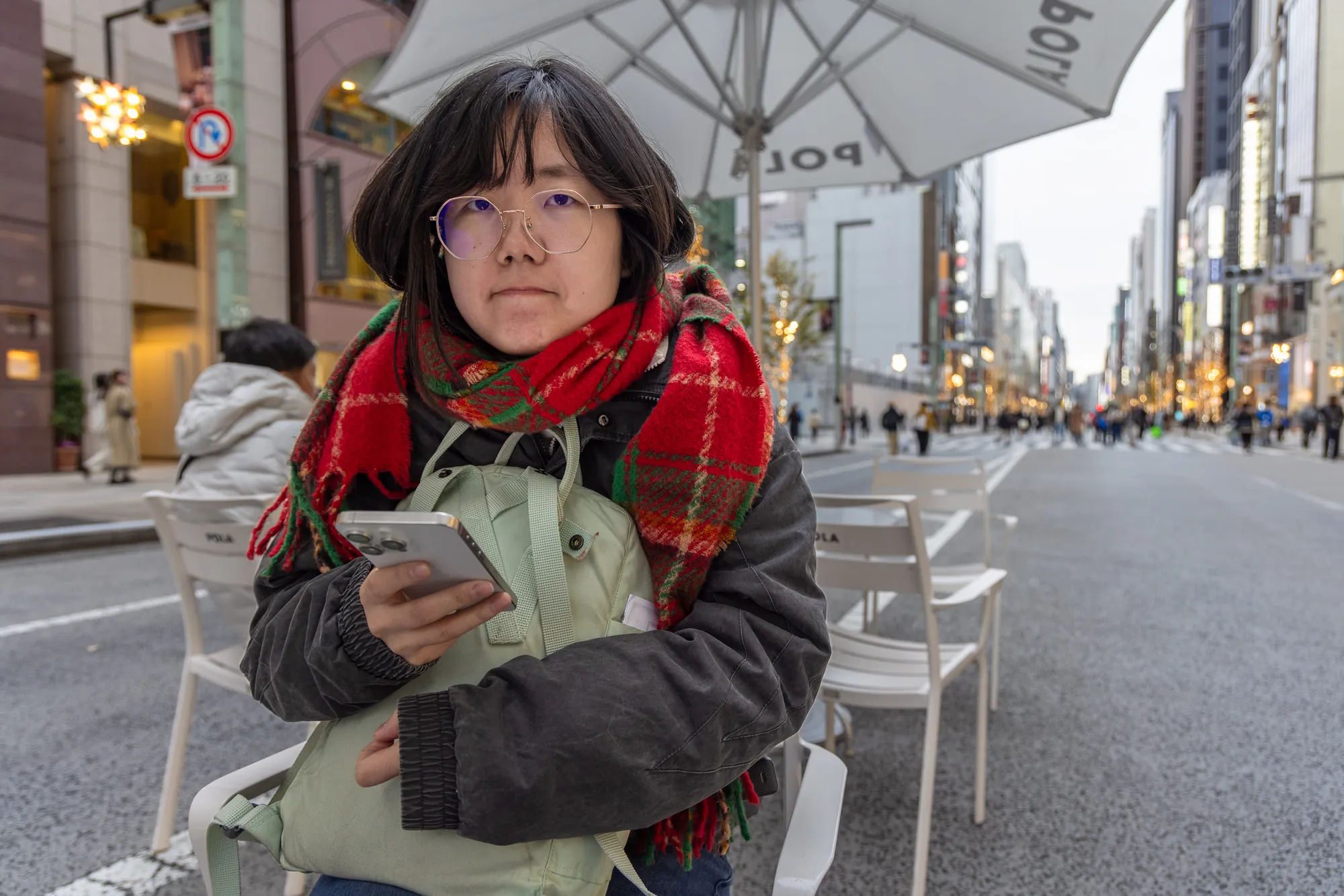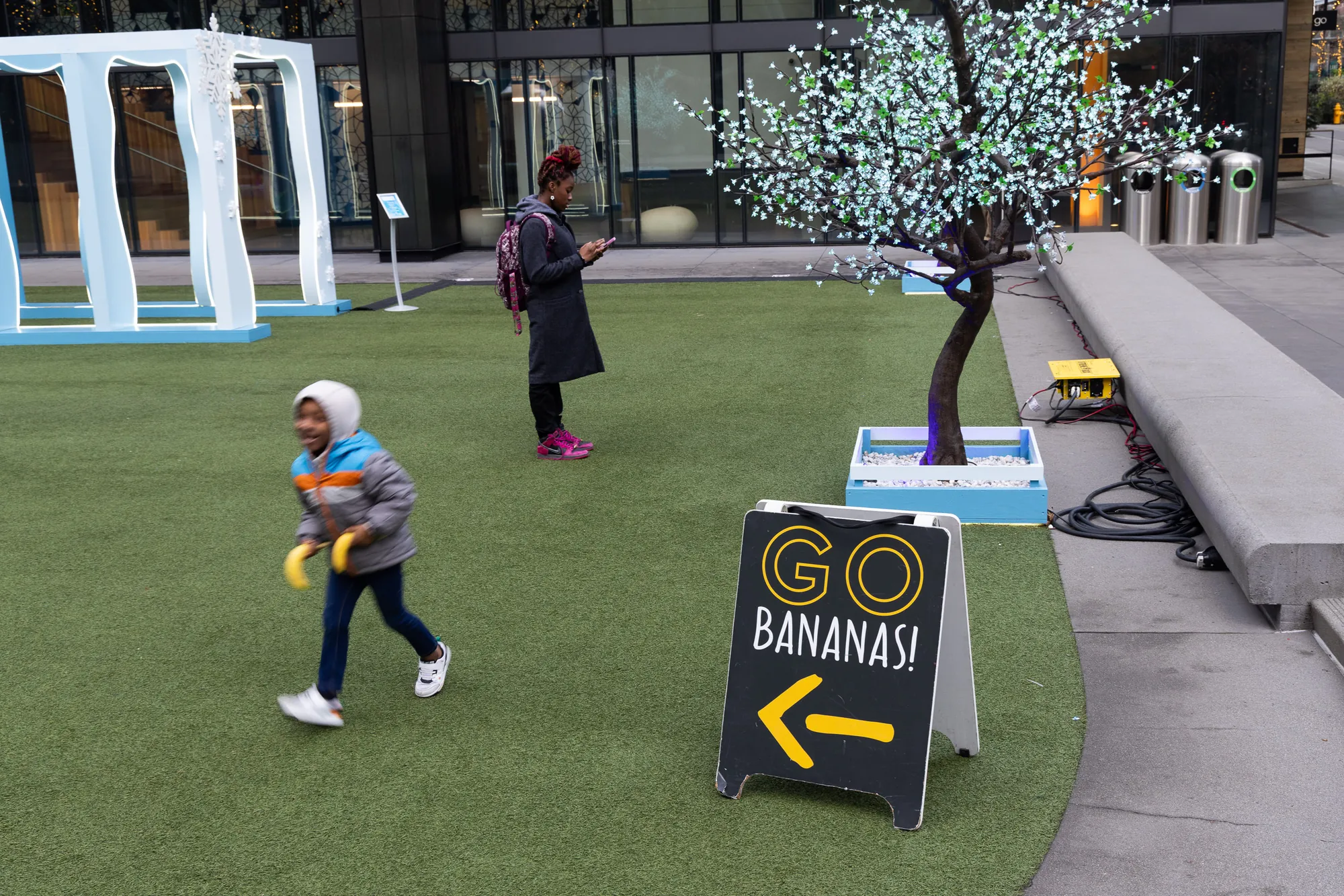 In the last days of 2024, my wife and I were staying near the Amazon Spheres in Seattle. I’d heard that Amazon gives out free bananas there every morning, so we went to check it out. While we were there, I saw a kid who was running around excitedly with his bananas. I captured this joyful moment in this photo.