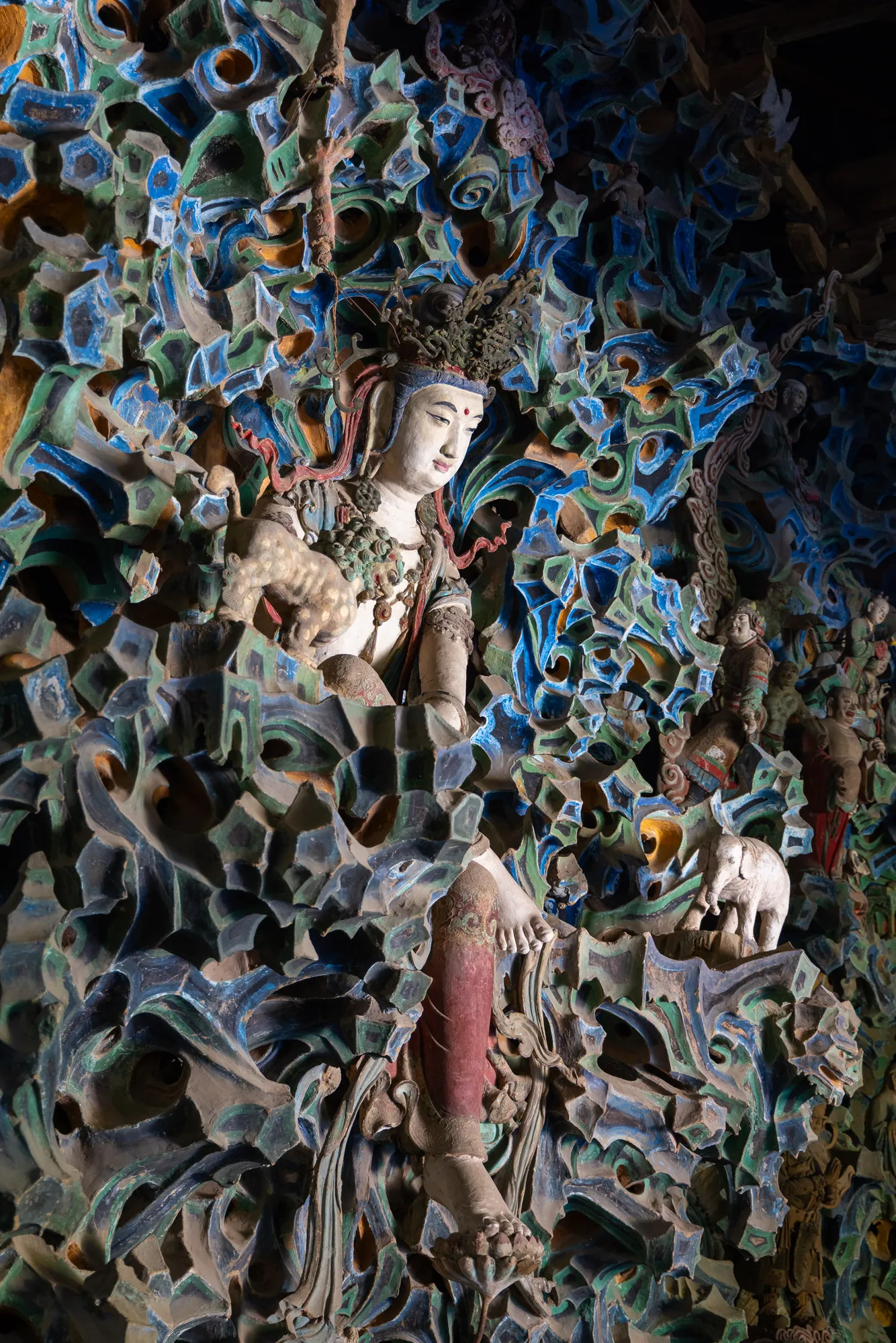 Inside the temple’s Dabeige Pavilion is the Reverse-Seated Guanyin, which unusually faces the rear entrance of the hall, with its back to the central Buddha. This rare and intentional orientation expresses the bodhisattva’s resolve to turn toward the world and respond to suffering. With its calm demeanor and intricate details, it is regarded as a rare masterpiece of Song Dynasty Buddhist art.