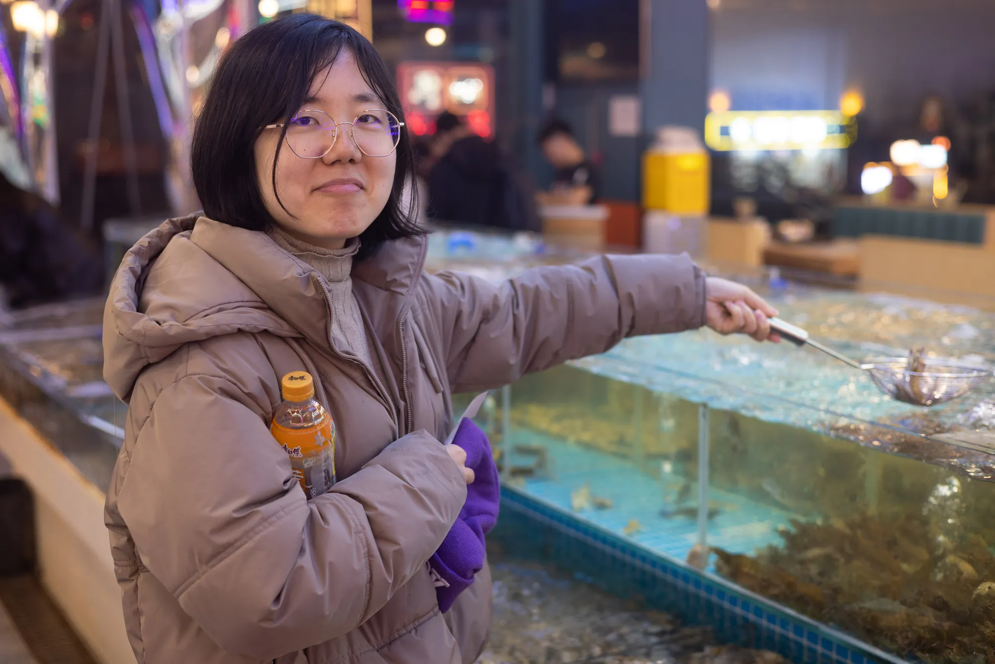 At the end of April, on a weekend, my wife and I went to Beidaihe for a short getaway. For dinner on the first day, we went to a buffet restaurant. The restaurant’s seafood was all live, and customers had to pick their selections from tanks themselves. It seemed like my wife was a little scared to do so…